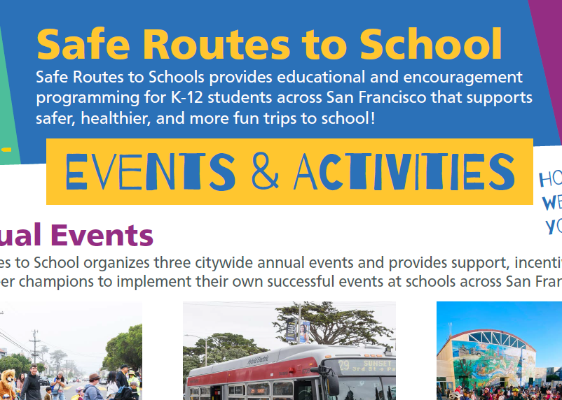 Events, programs, and activities offered by the Safe Routes to School program in San Francisco. Check it out and learn how we can support your school!